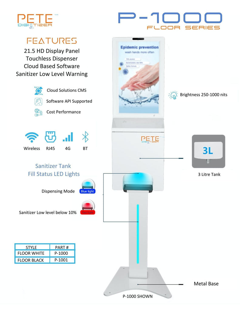 Pete The Hand Sanitizer – Touchless automatic dispensing and Digital Sign Kiosk perfect solution for high-traffic public locations.Floor Model